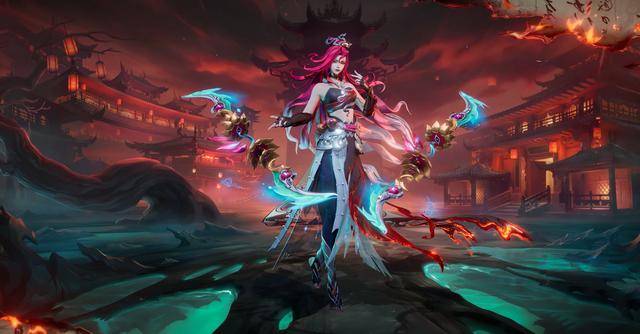 特效展示:该皮肤属于「妖灵志异」系列,以罗刹妖灵为主题,塑造了一个妖艳冷厉的复仇阿轲。