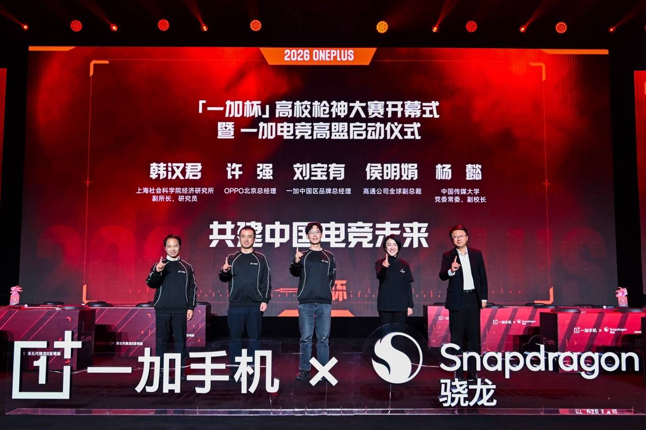 2026 年 3 月 9 日,由一加举办的「一加杯」高校枪神大赛在中国传媒大学正式开幕。本届赛事在专业性、参赛便捷性、赛事权益方面带来三大全新升级,致力于打造更专业的竞技平台,为广大电竞爱好者带来更便捷的参赛方式以及更丰厚的赛事奖励。作为和平精英官方授权的行业领衔赛事,「一加杯」自去年首次举办以来便受到行业广泛关注,实现了高校覆盖率与参赛人数双双突破。在开幕式现场,一加中国区品牌总经理刘宝有、高通公司全球副总裁侯明娟、上海社会科学院经济研究所副所长韩汉君以及中国传媒大学党委常委、副校长杨懿等嘉宾共同见证了这一电竞盛会的开启。