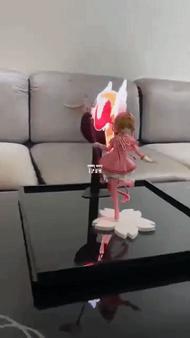 博士特意去研究了一下,从旋转叶片到投影的出现,个人觉得应该是某种悬浮投影技术。叶片旋转起来后就是一个屏幕,人眼看不到,图像却可以投影上去,形成了一种投影到空气中的假象。一位热心的玩家则分享了自己收藏的《魔卡少女樱》玩具,原理是一样的,小樱背后的图像也是投影到旋转的叶片上呈现出来的。