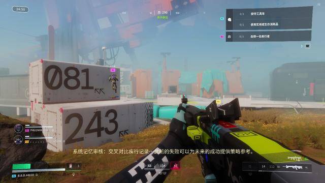 游戏局内,正如上文提到过的,PvEvP的形式会经常造成大混战。刚刚上手的玩家可能难以直观地分辨PvE敌人与PvP玩家——或者说,由于游戏画面色彩过于饱和亮丽,如果认真投入精力观察画面,经常会在没有发现敌人或对手的情况下与对方撞个满怀。游戏的音效十分重要,枪声与脚步声有时比视觉信息更有价值。但此时笔者最想念的还是《命运2》的雷达系统。在服务器压力测试时,一度玩家们反馈PvP遭遇太少,但在正式版上线时,如果运气不好,想完成一个早期主线任务甚至都可能需要团灭两三个玩家队伍,强度极高。在此基础上,部分boss级PvE敌人的强度也很高,在弹尽粮绝几乎就要战胜时,被一队PvP玩家杀入捡人头的挫败感极强。