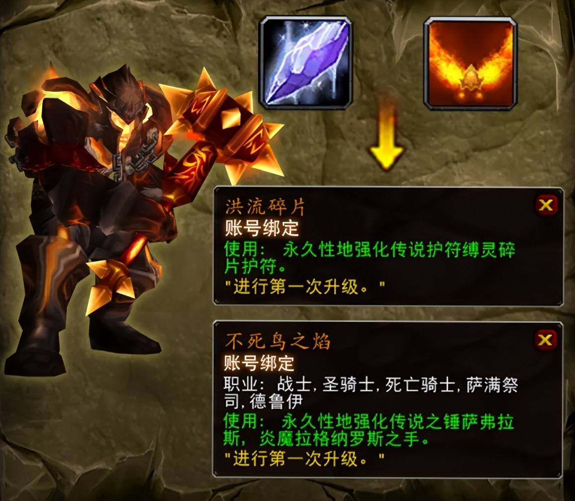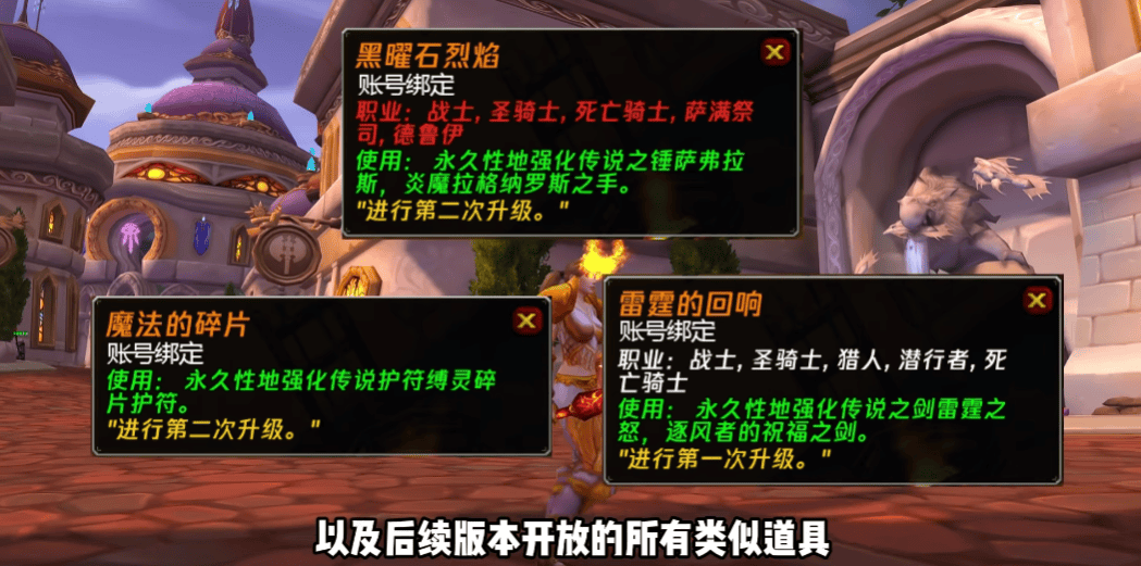 同时,时光服未来阶段的橙色升级物品也会如此,像黑曜石烈焰、魔法的碎片和雷霆的回响等等。玩家一直抱怨的“有橙装,却没见过升级物品”的难题终于在本周四更新后得到解决,但随之而来的将会是所有升级物品的价格上涨。