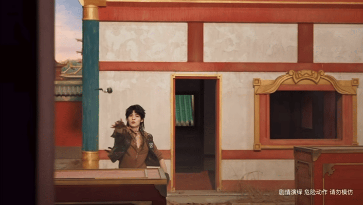 这些考究的场景打造不仅仅是“背景板”,《想去你的2026》中许多剧情都架设在对应场景特有玩法上,与游戏深度绑定。例如易泽在比赛中快速击杀对手所持的“大漠双刀”,就是春节新版本“敦煌地图”才有的全新主题道具;而易泽与韩澈师徒交流时看的烟花,也和游戏里“敦煌地图”中是一致的。