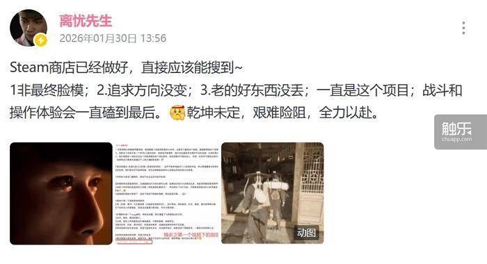 2026年1月29日午间,《锦衣卫》官方预告正式发布。评论区的反馈大多集中在对美术品质的好评。有老玩家担心:游戏是否丢掉了最早的江湖味?离忧特意发布了一条动态回应:"追求方向没变,老的好东西没丢,一直是这个项目。"