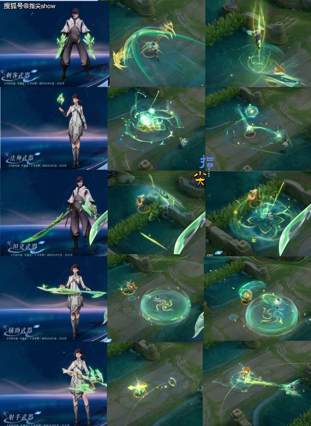 首次上线的元流武器都是这种绿色的效果,五个职业的武器不同,但是风格一样,在局内的特效以绿色和黄色为主,攻击后会嗲罗树叶,虽然整体看起来不算华丽,但至少能改善玩家的视觉疲劳。