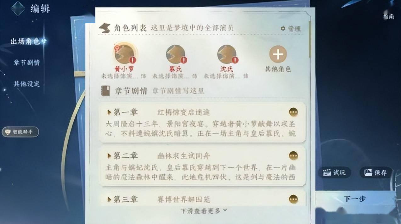 而玩家创意的集中爆发,则得益于“造梦模式” 本身的低门槛与高创造性。从某种意义上来讲,通过游戏内置的AI创作助手,每位玩家都能轻松打造属于自己的专属剧本。