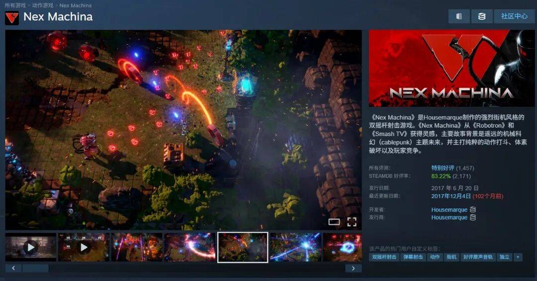 国内玩家相对比较熟知的可能是他们的双摇杆射击游戏《Nex Machina》