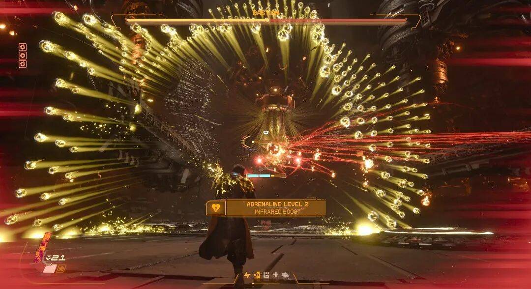 试玩期间让我印象最深的,是头个BOSS剩最后一命时,出招还是那几下但整体节奏突然加快,你的活动空间被圈到剩巴掌大,跟着背景里更加激昂的电吉他……顶着这种压力战胜敌人后长吁一口气欢呼,这样惊艳的体验没有半点水分。