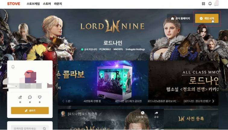 下载完成后,进入STOVE平台,点击右上角的账户,再点击红框圈出的齿轮。