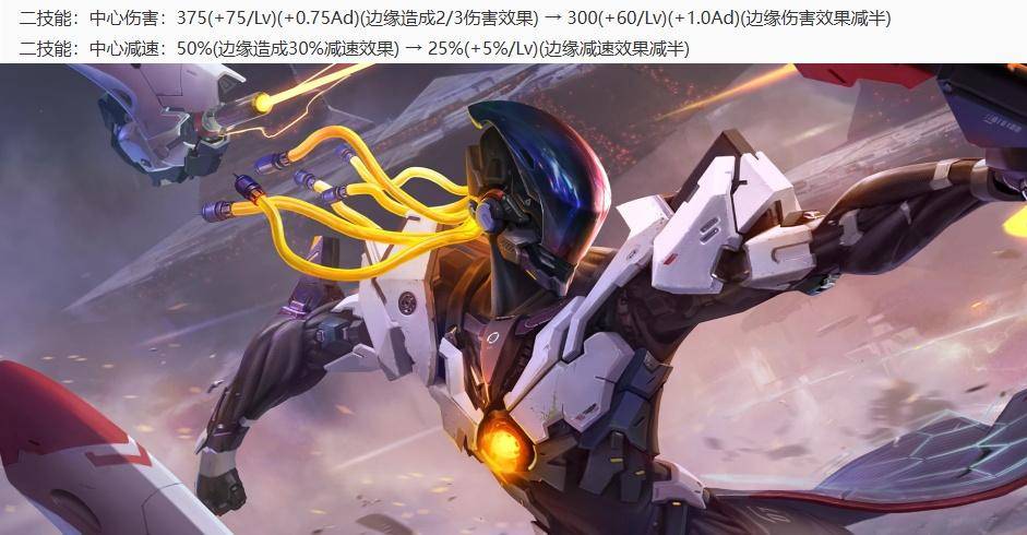 后羿削弱:2技能的中心伤害减少大约28~0点,2技能的中心减速从50%降低至25%~50%,2技能的边缘减速和伤害降低了六分之一。(随技能等级变化)