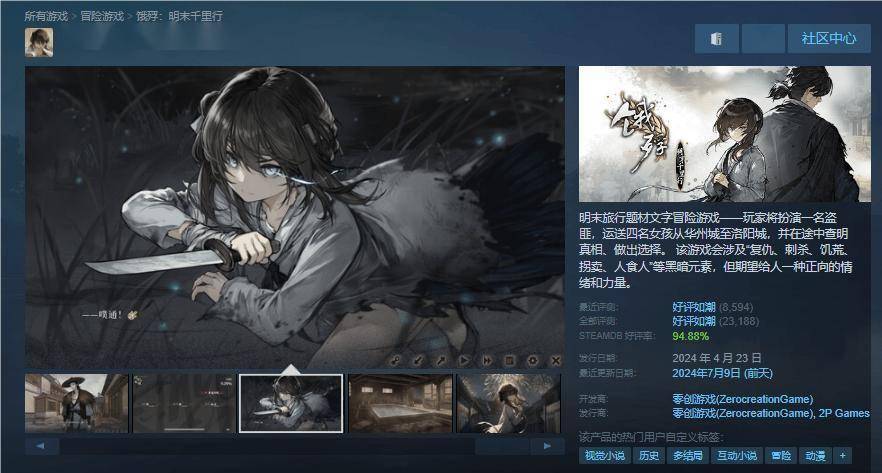 7 月 11 日消息,零创游戏工作室宣布《饿殍:明末千里行》销量已突破 50 万份(7 月 10 日 0 点达 525080 份),目前好评率 97%,夏促价格 29.6 元。