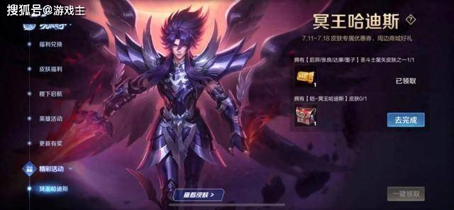 如果你有其他圣斗士的皮肤的话,则可以先去专属活动里领取440优惠券,以最低的990点券,相当于用史诗限定多一点的价格,入手铠的“冥王哈迪斯”。
