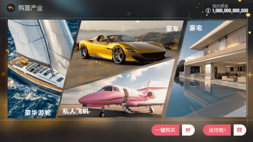 玩家可以将奢侈品包包以及化妆品等物品赠送给女角色以增加好感度,购入住宅也能实际改变游戏类的居住环境,看来这些商品不仅仅是虚拟图标,小编认为《财产》还藏了不少东西,目前的种种信息都体现出这款游戏深度还原了富豪的奢华生活方式,也许玩家还能挑选世界级的限量豪车、私人飞机、奢华邮轮,实际享受这些仅在偶像剧存在的奢侈品?