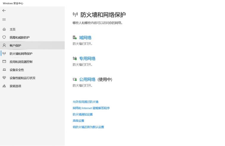 或者也可以通过关闭防火墙的方式来解决问题。只需要进入【Windows安全中心】,找到【防火墙和网络保护】,再将防火墙暂时关闭就可以了。