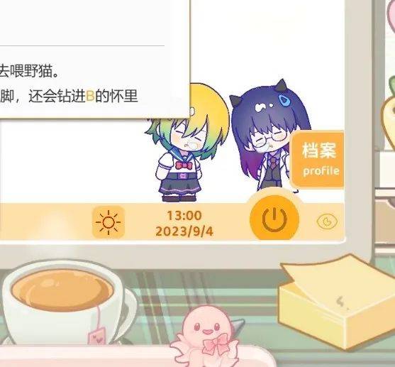 对她们来说,因为长期浸淫于同人圈中,设定出这些角色可以说是一件顺理成章的事,甚至有些时候,还会因为想到的点子太多,而不得不砍掉一部分。这种强大的表达欲也体现在文案上。主线的文案来自于小枝一位圈内好友的约稿,同样也是浸淫同人圈多年的经验丰富的写手。小枝说,在拉发行的时候,很多人都告诉她们,游戏的文本量较大。