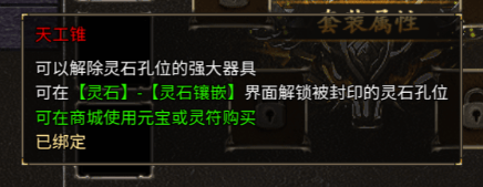 获得灵石后,你可以在灵石界面中进行镶嵌。消耗灵符或元宝在商城购买道具【天工锥】,即可开启神器孔位。每个神器都有特定的孔位,你可以根据自己的需求和策略,选择合适的灵石进行镶嵌。