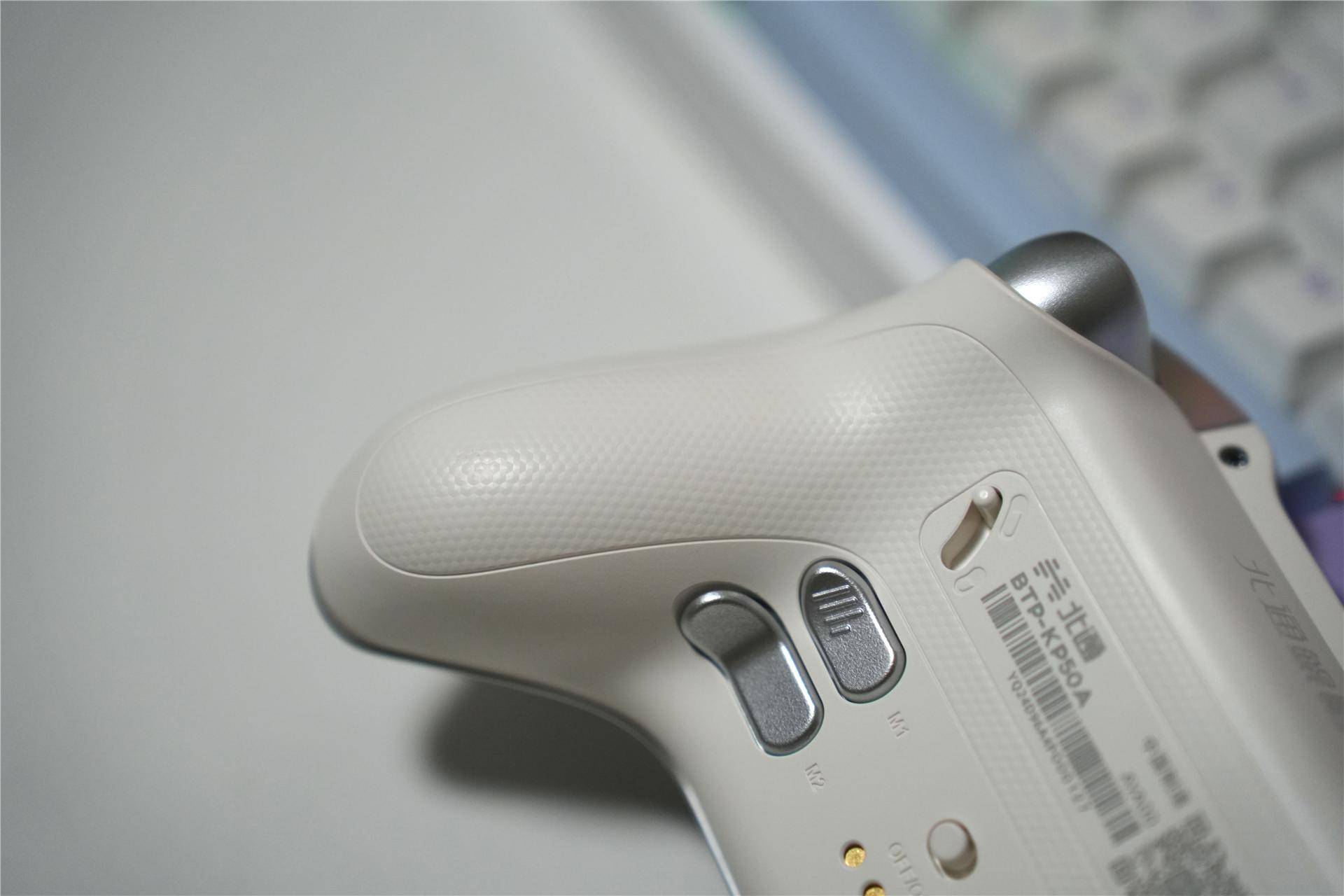 肩键也是轻触开关设计,圆润的边角,表面有北通防滑纹,不易打滑。