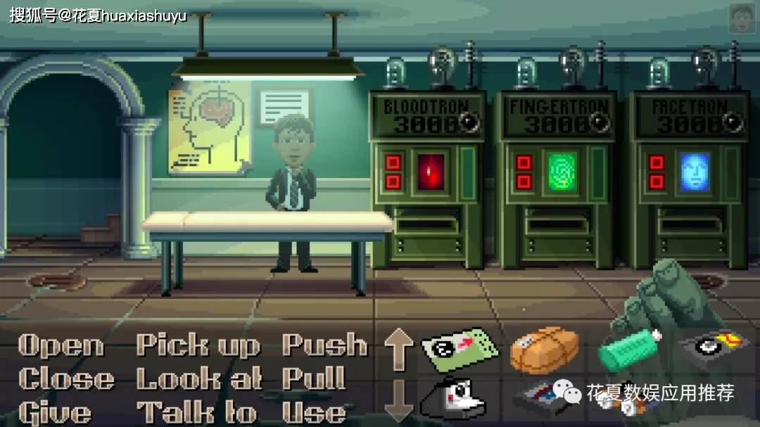 SCUMM即“为疯狂豪宅设计的脚本创作工具”(真拗口)类游戏。这个引擎最大的特点是,解谜部分通过找到屏幕下方合适的动词来与物品互动实现,例如“交谈,捡起,开关,推拉,给予,看”等等。这个看似繁复的设计其实产生了奇妙的化学反应,让解谜过程变得有趣又有深度。