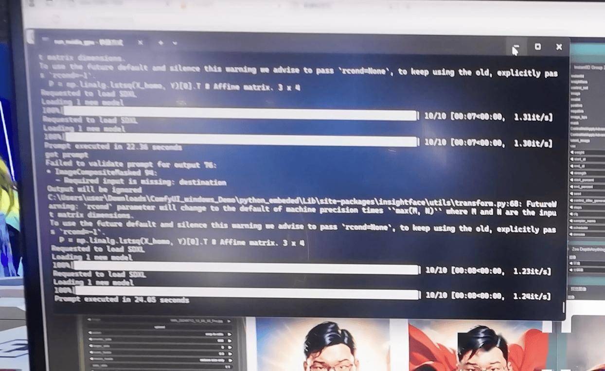 由于整个工作流涉及景深识别、抠像等一系列流程,对算力的要求不可谓不高,不过在 GeForce RTX 4090 D 星曜最高可达 1177 TOPS 的本地算力加持下,生成 2 组共 4 张 1000*1504 分辨率的图片,共耗时 24.65 秒,效率非常高。