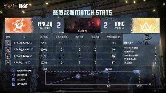 FPX.ZQ的求生者选择了守墓人、击球手、祭司、“心理学家”(BAN时空之影、歌剧演员);MRC的监管者XC选择了鹿头。(BAN先知、入殓师、古董商、飞行家)