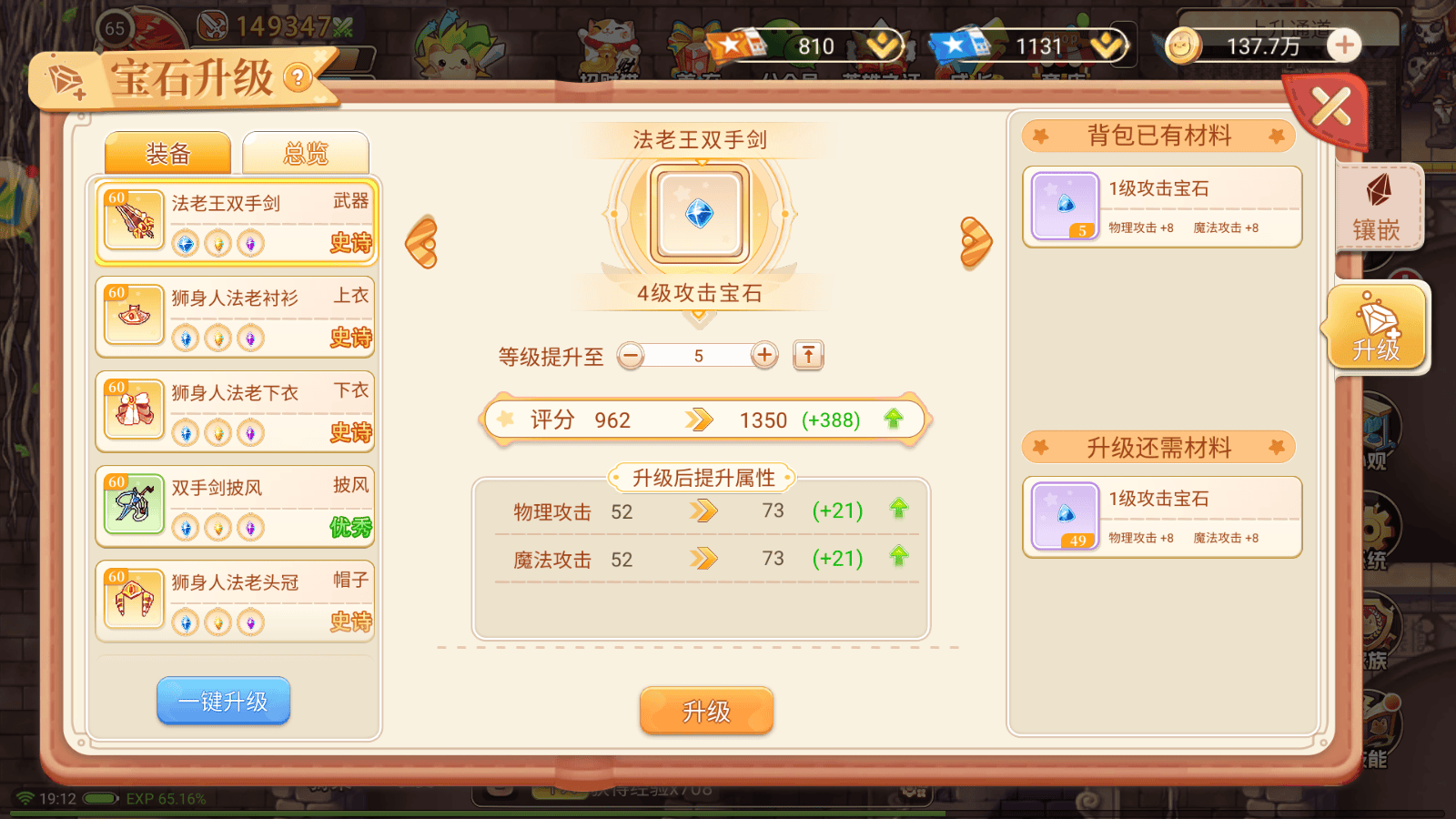 每件装备都有宝石镶嵌位置,玩家可以镶嵌宝石来提升装备属性。宝石分为物理攻击、魔法攻击和生命三种类型,分别对应蓝、红、黄三色。玩家需根据装备属性和个人需求,尝试不同的镶嵌策略。稀有宝石可以通过宝石熔炼产出,能大大提高稀有宝石产出概率,即便失败了也不亏,失败后有宝石精华产出,后续可以用来稀有宝石升级。