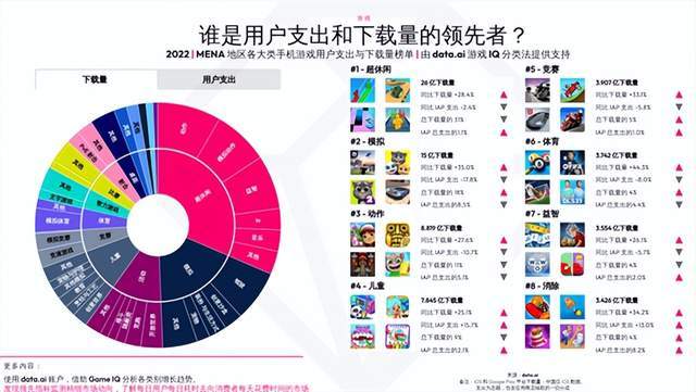 据Data.ai发布的《2023移动市场报告:MENA》中提到,超休闲和模拟类是当地下载量最大的两个品类