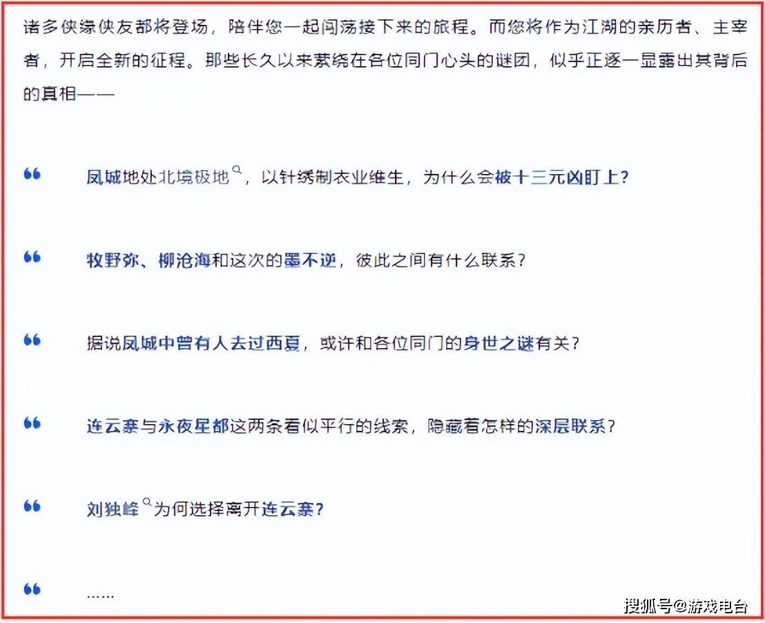 这次《逆水寒》手游更新的主线剧情就要从他身上开始了,这可真是开局王炸,随着玩家们对新剧情的探索不断深入,很多隐藏的谜题也将被一个个揭开。