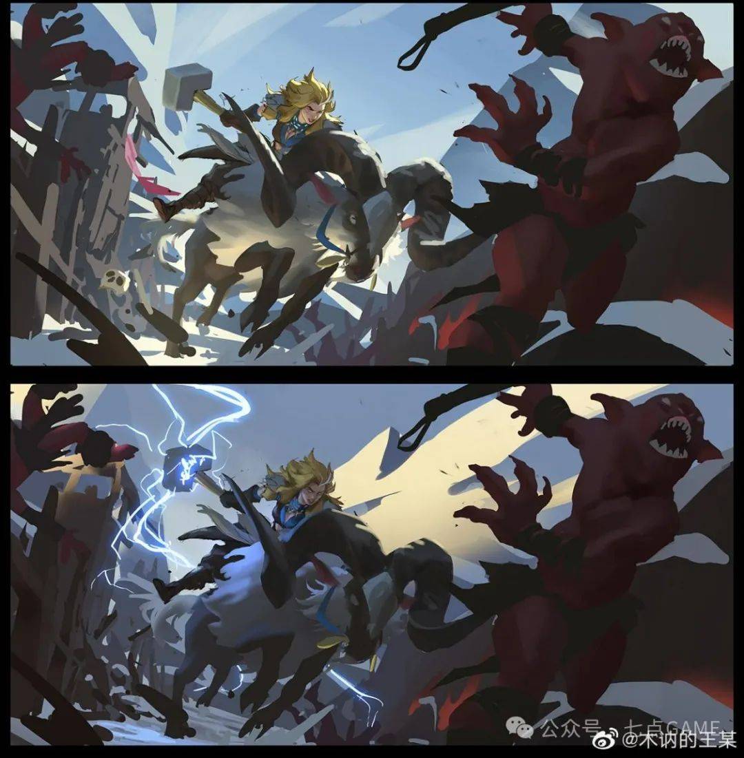 当然这只是一个工作流程上的经验,大家还是需要按照自己的绘画习惯来定制自己的流程,比如我最喜欢的LOL画师Victor Maury,他的几乎每一次过程都在大改大关系,每次尝试都给到新的惊喜,这可能就是项目组内高度信任和磨合的结果,也是非常让人羡慕的状态。