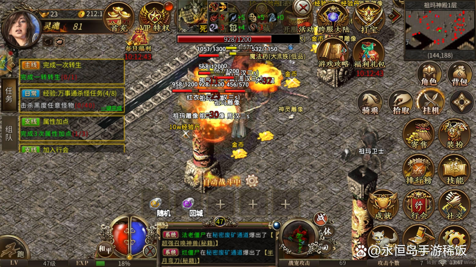 在【传奇3微变版】中,战士、法师、道士三大经典职业得到了完美的再现。战士以其高血量、强攻击成为战场上的冲锋者;法师凭借强大的魔法输出和范围攻击成为远程火力压制的关键;道士则以其独特的召唤技能和辅助能力成为团队中不可或缺的存在。