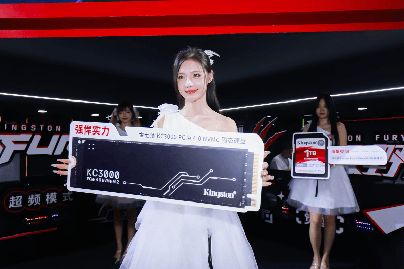 展馆核心位置的金士顿主题展台和酷炫的舞台无不告诉各位观众,高端存储就是为游戏而生,为生产力而战斗。甜美的ShowGirl吊足了众多玩家的胃口,驻足合影留念的人群绵延不绝,更吸引他们的则是时尚走秀时展示的金士顿高性能存储产品。
