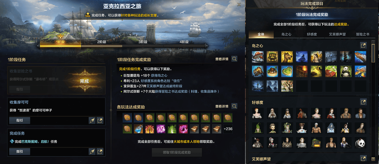 如果直升券用完了,还想体验其他角色,游戏里也提供了一连串的新人成长任务。完成这些任务,就能获得宝石、技能点和各种战斗道具,让角色更快成型,加速游戏前期近30小时的繁忙主线。