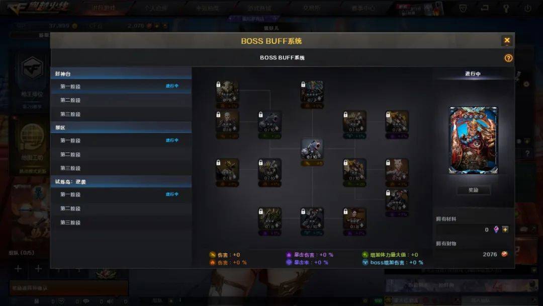 封神台1阶段中,大部分Boss buff可通过消耗觉醒宝石,直接解锁。所以CFer上线后,记得直接前往Boss buff系统页面使用觉醒宝石解锁。