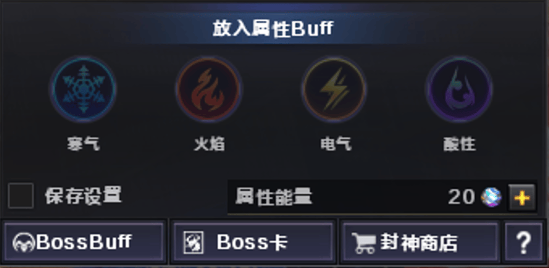 游戏外的属性BUFF为必备选项,建议CFer在每局游戏开启前,消耗属性能量将4个弱点属性BUFF均点亮。