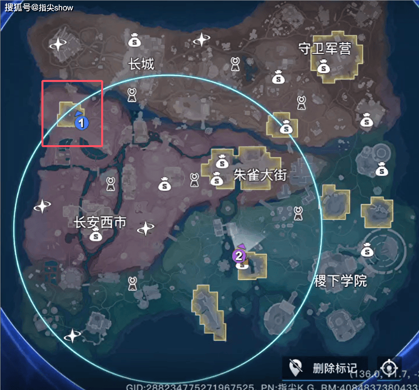 在地图中标出黄色的位置就是高资源区,所以开局一定要落在资源点。