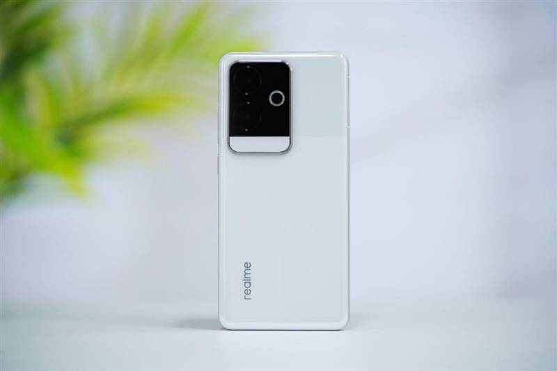 在机身背板的左下角,印有横版的真我“realme”品牌logo。