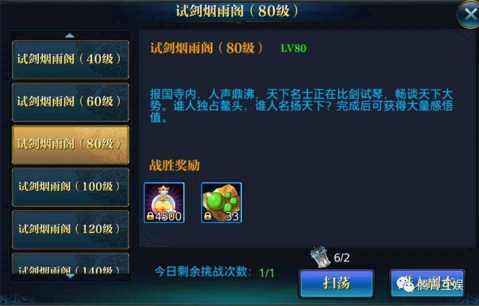 将军想要提升境界强大么?不过想要提升境界没有足够的感悟值也无能为了,推荐将军参加试剑烟雨阁副本!!!