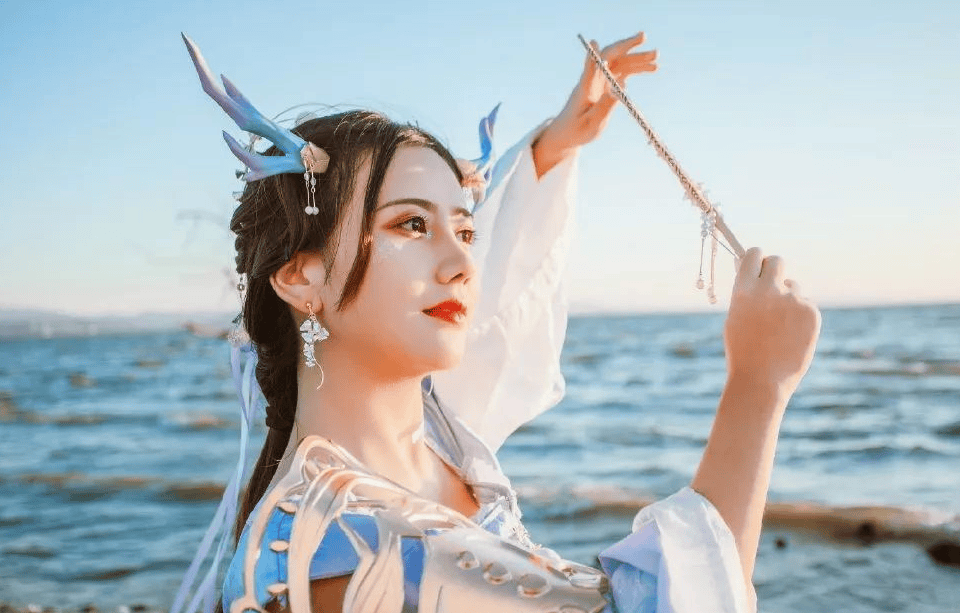 程潇COS的龙女形象来自于《逆水寒》之中,如果说杨超越版龙女走的是淡雅可爱风格,那么程潇这版深蓝加纯白配色的COS则是清冷御姐风,这种飒飒的风格为《逆水寒》吸引了不少路人玩家的目光。