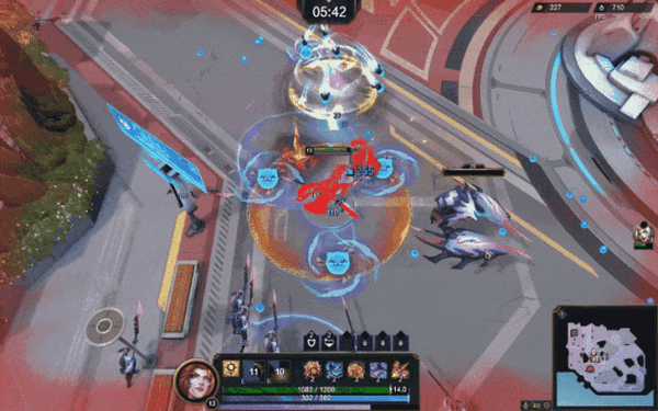 E技能-怪奇喷涌:阿萝拉打开一扇精神领域的次元窗,引导灵魂能量喷薄而出,对敌人造成伤害和减速,同时阿萝拉也会向后位移一小段距离。