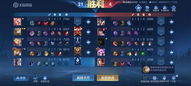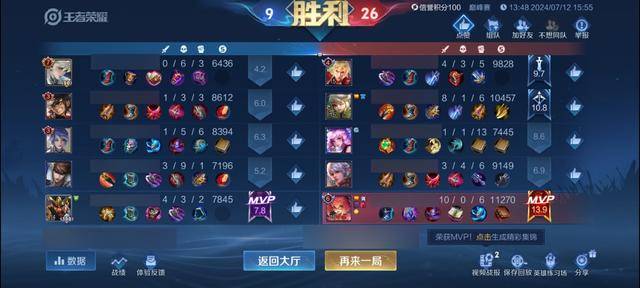 这局阿古朵出肉就非常好打了,前排有了,我们补上控制,孙膑再给一个加速和回血,搭配两个输出位的输出阵容就算是比较扎实了。