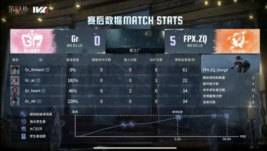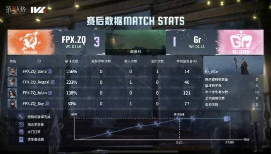 Gr的求生者选择了守墓人、杂技演员、昆虫学者、小说家(BAN时空之影、歌剧演员);FPX.ZQ的监管者DongX选择了宿伞之魂。(BAN先知、佣兵、拉拉队员、勘探员)