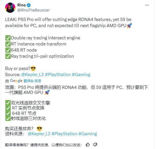 另外据最近的泄露消息,PS5 Pro将率先采用AMD RDNA 4架构某些尖端技术,而该技术尚未在PC市场应用,后者可能要等到AMD的下一款旗舰桌面GPU。