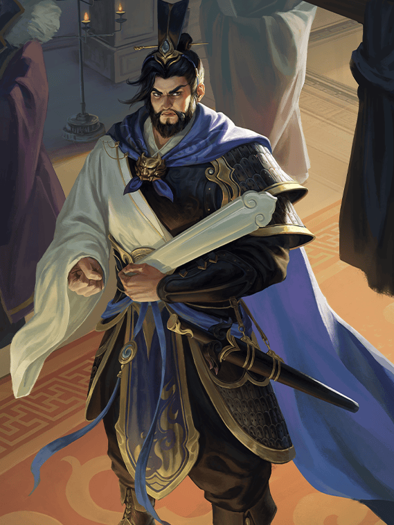 孙礼这人我的印象不深,因为事迹出处过于繁杂,记得比较深的首先是他是曹操发掘提拔的琅琊太守,石亭之战兵败时,是他拢住了后军曹休才得以得脱,因此孙礼被赏了一大笔财富,但孙礼将他们全部作为阵亡兵将的抚慰金了,后来可能因为劝谏曹叡不要滥用民力的原因,曹叡赏识他让他进了曹爽的圈子;曹爽执政时多次替换曹魏老臣所在岗位给自己党羽,招致老臣孙礼不满,多次劝谏无果后,遂希望司马懿再度执政来去挽救朝纲,但结果就是高平陵之变,战队司马懿的孙礼虽然仕途更进一步,但名声却像蒋济一样成了笑柄。立绘方面跟玩一样,根据附近人的装束来看,这应该是面君场景,这剑履上殿是急着去投胎吗?