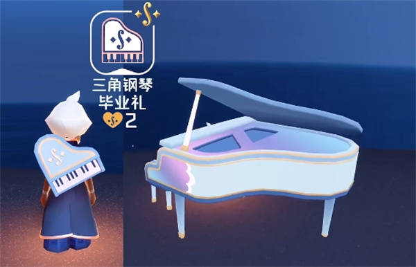 这次毕业礼的重点,也是很多玩家期待的三角钢琴,毕业礼的大钢琴是以天蓝色为主,粉紫色为装饰,不论是放在身上还是使用都很好看。而且也是目前光遇游戏中最大的乐器了。