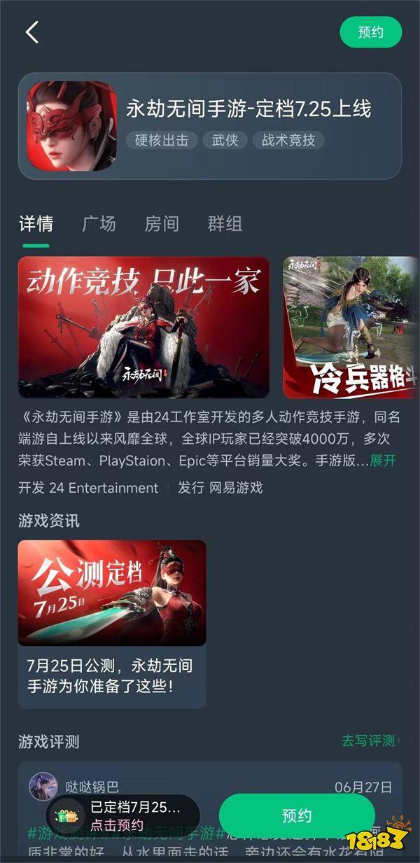 (目前游戏还未开服,仅能进行预约,等待7月25号游戏正式开服后,【预约】按钮就会更换为【秒玩】,届时就能够进行云游戏游玩了)。