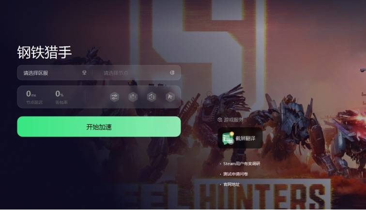 获取测试资格需要进入国外网站,因此需要先开启加速器。小编自己经常使用的是GI加速器,不仅目前能够免费加速,而且高峰期加速不需要排队。使用起来也比较简单,只需要打开加速器,进入【钢铁猎手】加速页面,接着点击【开始加速】即可。