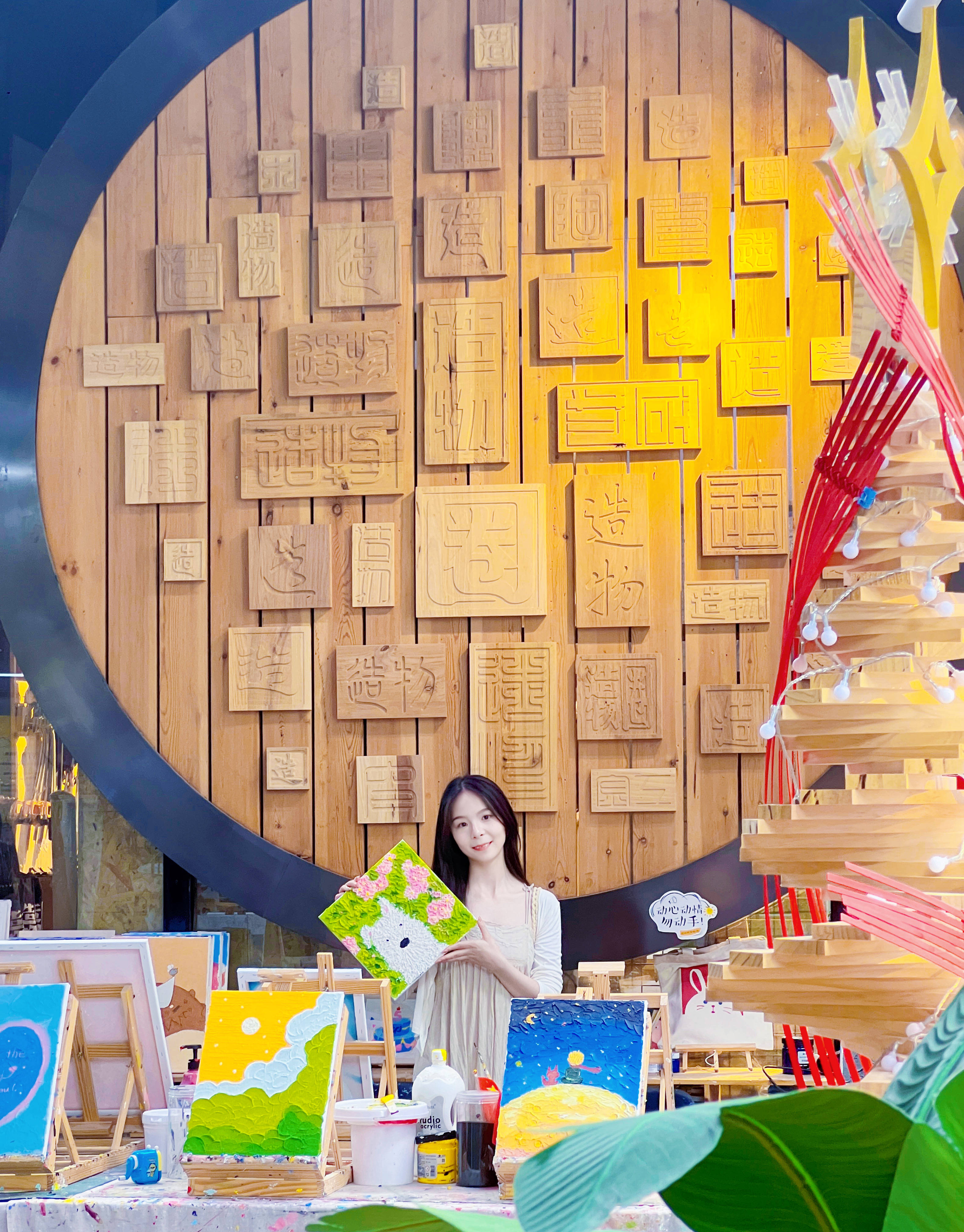 1.陶艺、木艺区:陶艺和木艺手工体验值我愿意给满分,嘻嘻。这两个性价比比较高,制作时老师也会全程手把手教学,自己的参与度也很高,可以做一些杯子、碗、花瓶、桃木皮影等作品,能真正学到手工技能。