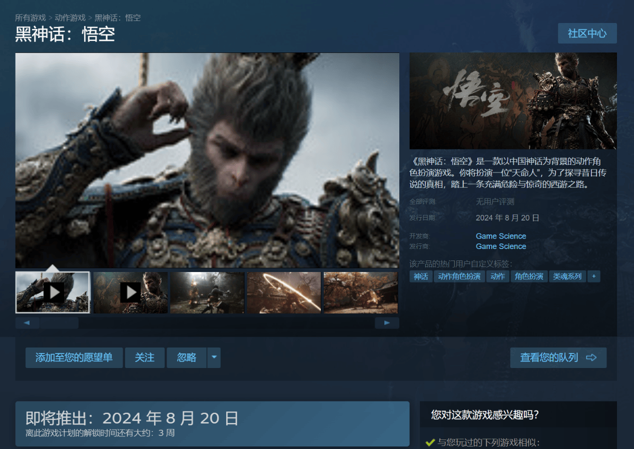 步骤4、进入《黑神话悟空》的steam详情页面