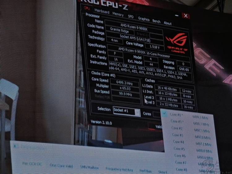 最后在液氮散热的帮助下,这颗锐龙9 9950X被超频到了6.5GHz,此时其CINEBENCH R23得分也来到了55327,创造了民用16核处理器的新世界纪录。要知道由于现场的表演性质,并没有太多时间对CPU的小参进行精细调整,因此6.5GHz或许并非锐龙9 9950X的“极限”。