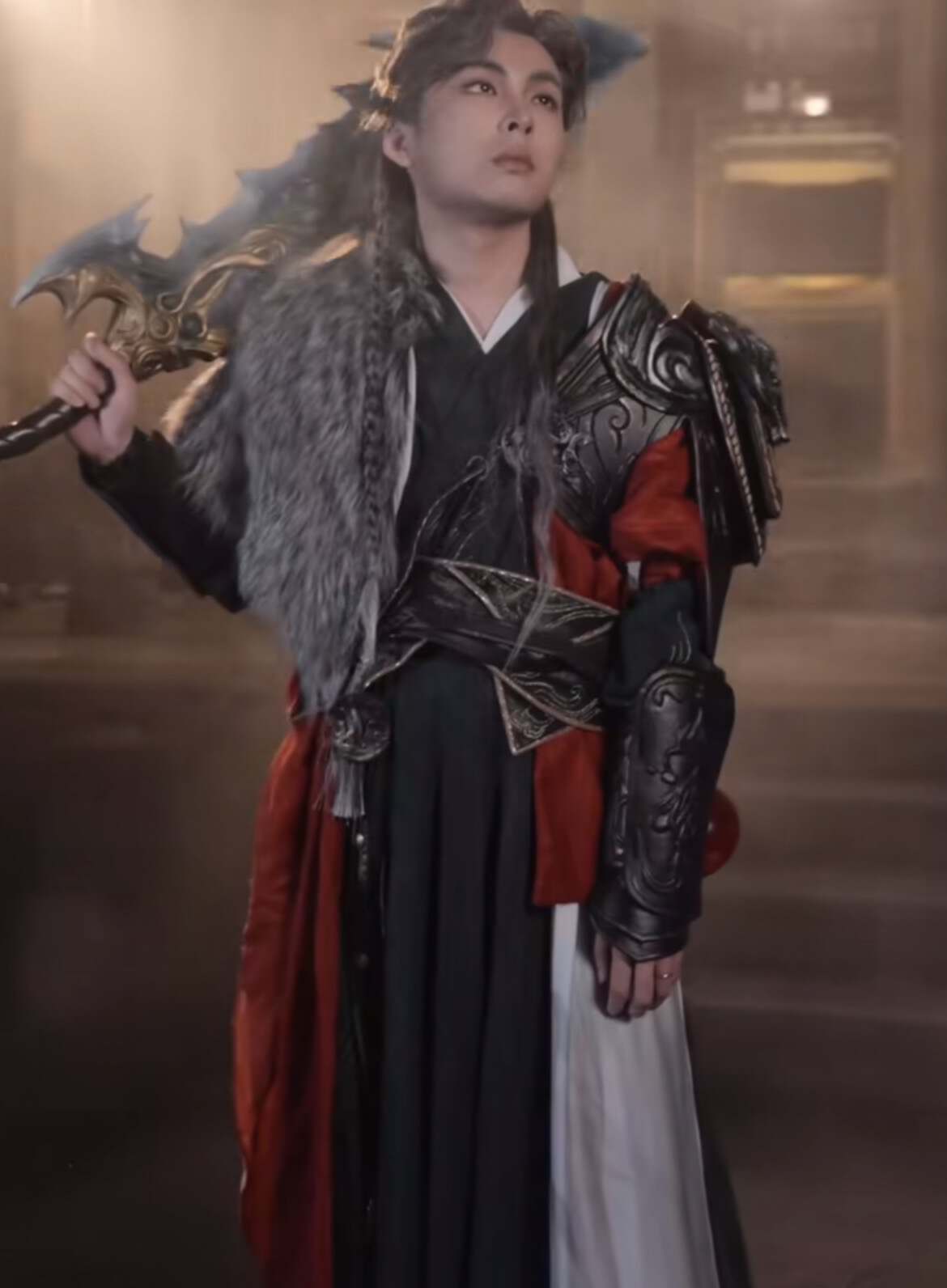 综合来说,还是非常还原的,并且视频制作看得出来也是用了心思的。能看到赖神头上戴着一头白色的假发,身上穿着夏侯惇同款的衣服,属于古风的造型。