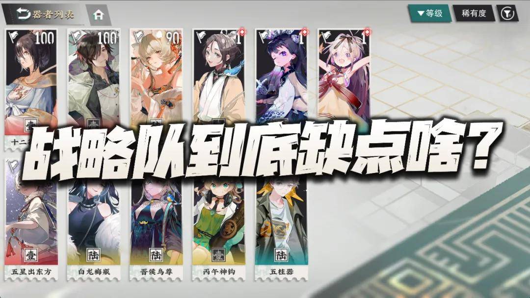 大家都知道......如果我们就上一个纯粹的战略队,那么这些战略角色的坦度又到底如何呢?维一个人觉得可能除了用了职业技能后的利簋之外,其余战略角色都跟肉没有太大关系吧,因此不少玩战略队的朋友便想出了上一个宿卫?亦或是搭一个洛神的玩法,但是吧如果假设战略队本身就能够很肉的,或者达到肉的还将就的程度,是不是咱们就能解放一个额外的位置出来了呢?