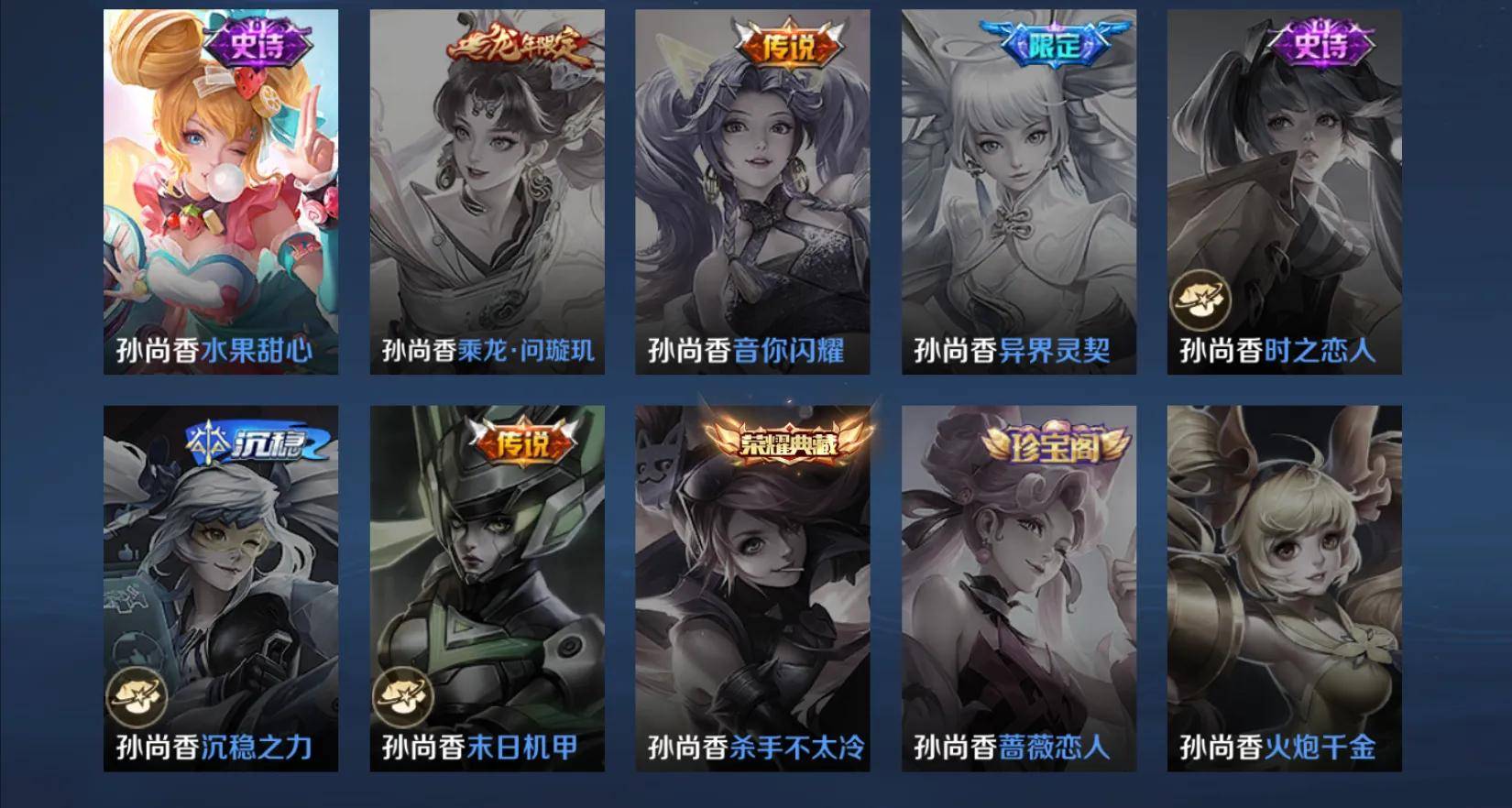 正如我所说,目前孙尚香他有10款皮肤在所有英雄当中那也是名列前茅的存在,有和他并肩的,但是还没有人超越他的皮肤数量。